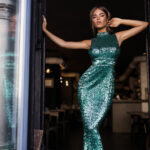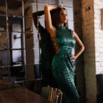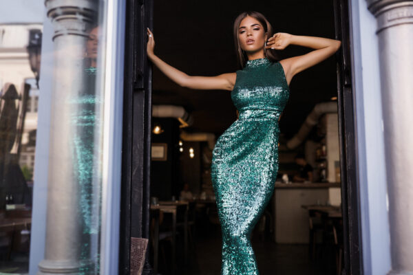 Shine with confidence in this captivating emerald green sequin evening gown, designed to make a statement wherever you go. The dress features a sleek, bodycon fit that elegantly enhances your silhouette, while the high neckline and sleeveless cut add a touch of modern sophistication. Covered in shimmering sequins, it catches the light beautifully from every angle, making it the ultimate choice for galas, formal occasions, and unforgettable nights out. Pair it with your favorite heels and minimal accessories for a chic, head-turning look.